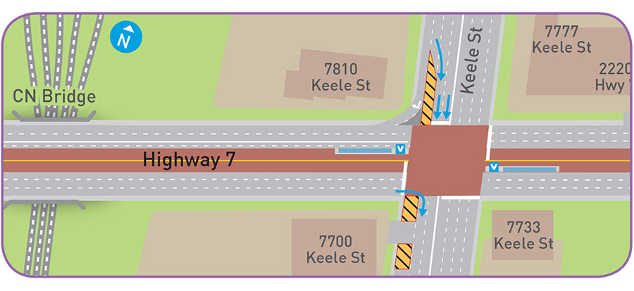 A new stage in the transformation of Highway 7 is happening! Beginning on Sunday, Feb. 26, YRT Route 77 and Viva Purple will temporarily change bus stop locations to operate in the completed section of rapidway on Highway 7 West, between Keele Street and Bowes Road. This will continue until the opening of the Toronto-York Spadina Subway Extension later this year when routes will change. Please see details below.